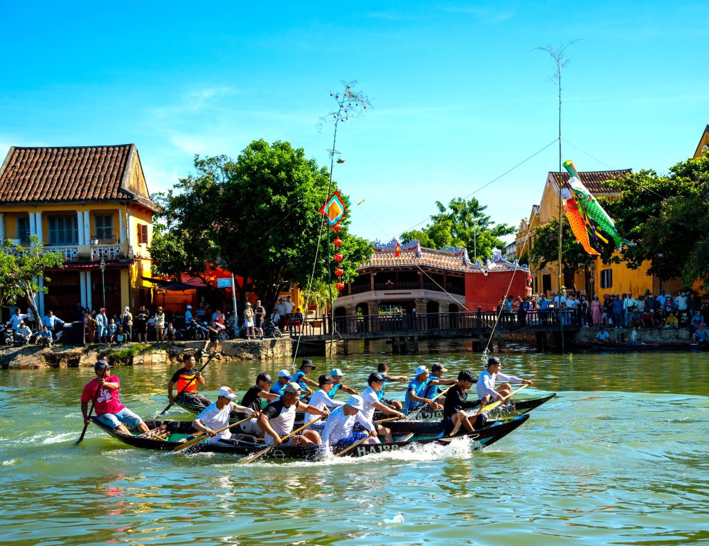 Trên sông Hoài, các ghe đua của 6 tổ thuộc nghiệp đoàn ghe bơi du lịch sông Hoài đã tham gia hoạt động đua ghe ngang Hội An- Nhật Bản và du khách. Ngay sau đó, các du khách cũng hào hứng tham gia với 4 ghe đua. Các ghe đua tranh tài sôi nổi với sự cổ vũ của đông đảo người dân và du khách.