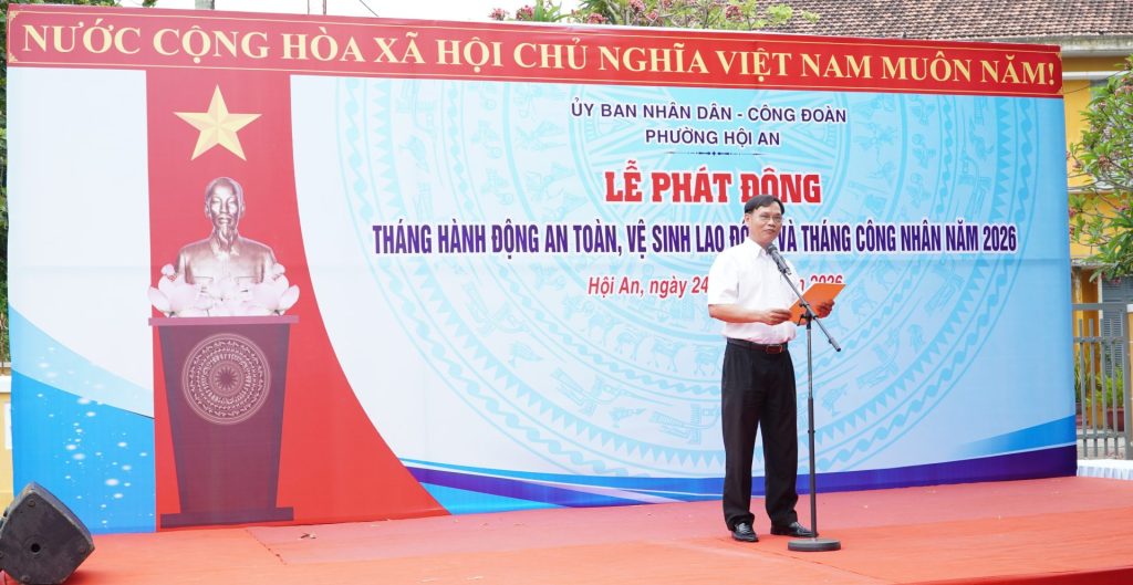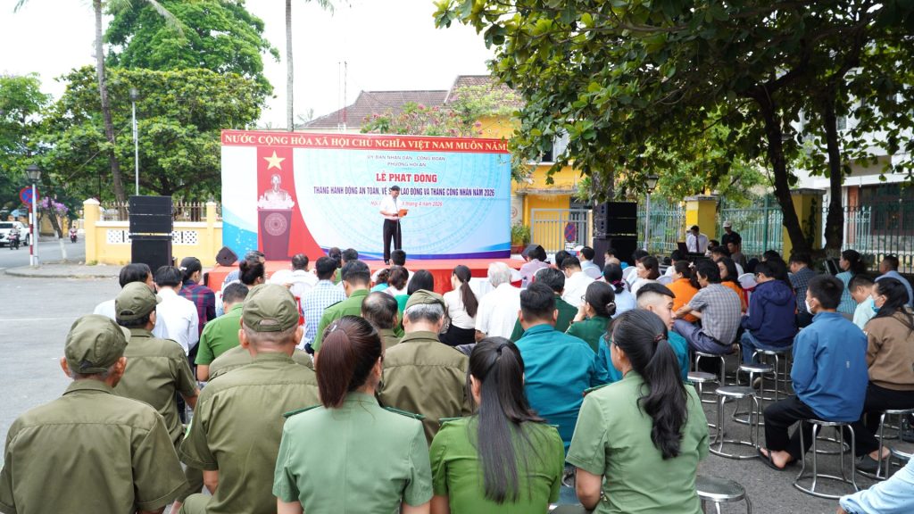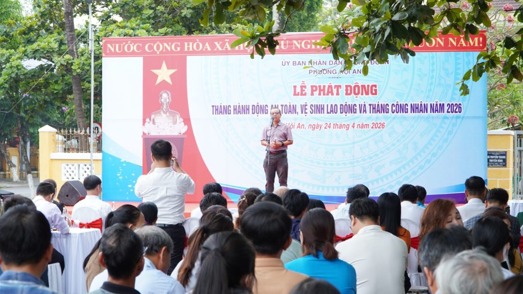Sáng ngày 24/4/2026, UBND – Công đoàn phường Hội An tổ chức Lễ phát động Tháng hành động về an toàn, vệ sinh lao động và Tháng công nhân năm 2026 tại sân Ủy ban MTTQ Việt Nam phường.