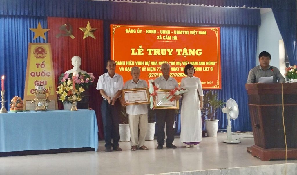 Ngày 24/7, Đảng ủy-HĐND-UBND-UBMTTQVN xã Cẩm Hà long trọng tổ chức lễ truy tặng danh hiệu vinh dự Nhà nước “Bà mẹ Việt Nam anh hùng” và gặp mặt kỷ niệm 77 năm ngày Thương binh liệt sỹ (27/7/1947-27/7/2024).